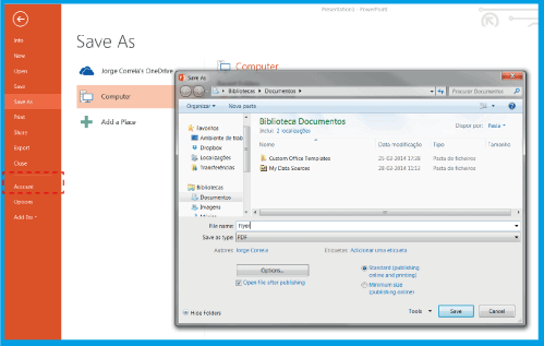 .Vá a em selecione o local onde pretende gravar o seu documento e grave em .
