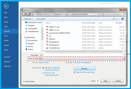 .Para gravar o seu documento selecione . Escolha . Por fim selecione o botão .