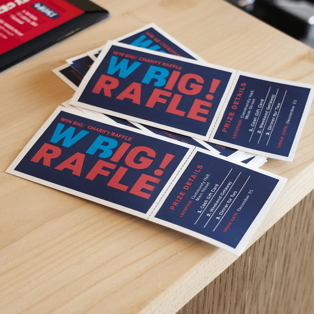 Bilhetes de rifa personalizados para eventos e angariação de fundos. Ideal para atrair participantes e rastrear inscrições. Perfeito para eventos de caridade, rifas e brindes.