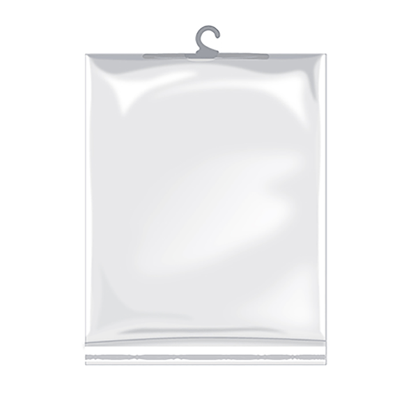 Polipropileno transparente 100% virgem. Galga 200. Material reciclável. Cabide de plástico no topo. Um orifício respiração. Lapela com adesivo reutilizável. Caixas de 500 unidades: 1 medida. Venda só de caixas completas (excepto amostras).