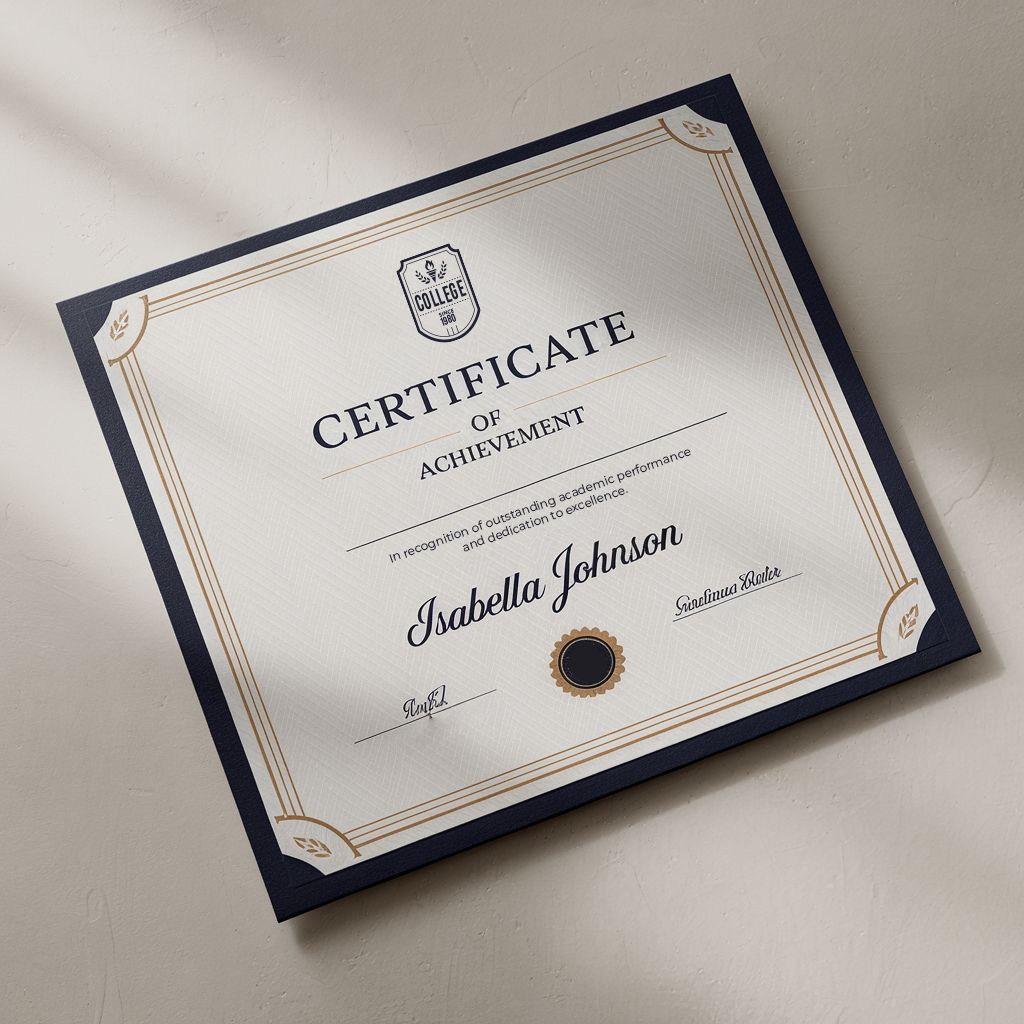 Certificados oficiais para marcos acadêmicos. Personalizável com nomes de alunos, notas e conquistas. Adequado para escolas e programas educacionais.