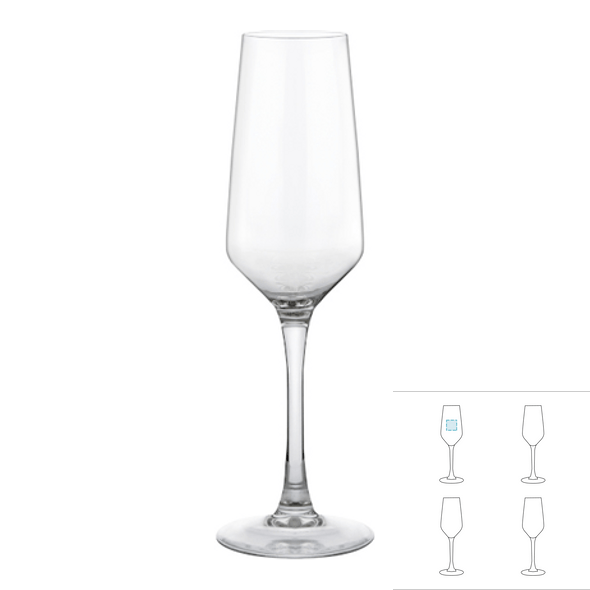 Encomende o seu Flute de champanhe em vidro - Mencia hoje e dê destaque à sua empresa