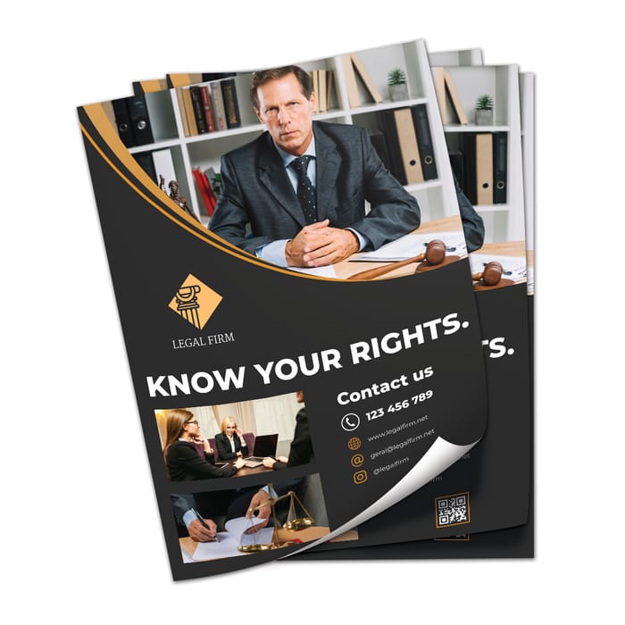 - Flyers profissionais de advocacia para exibir sua expertise legal.