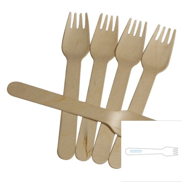 Pack Garfos descartável em madeira (100 un) - Personalizável ao melhor preço